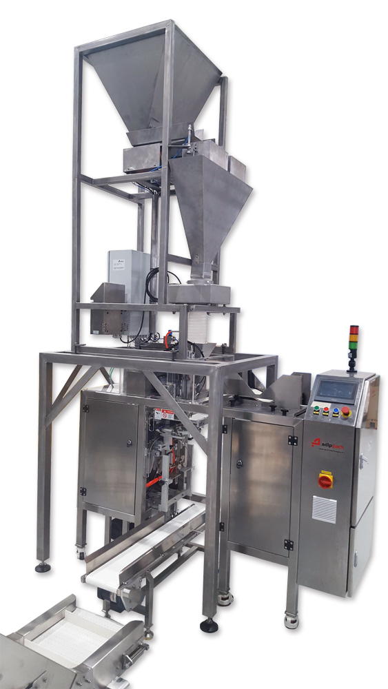 Complete tweevoudige weeg- en doseermachine. De AdlP FS-Vib2 wordt gebruikt voor het vormen, vullen en sluiten van zakken. De zakkenvulmachine heeft een compacte vormgeving en eenvoudige werking.